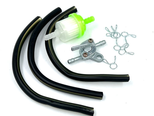 Bensinkran og 3 slangestykker + bensinfilter og 6 slangeklemmer