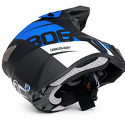 ECE godkjent hjelm i mattsort/blå dekor.