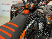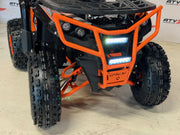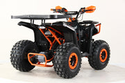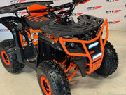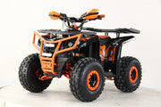 Ny stor og kraftig elektrisk ATV med direktemontert BØRSTELØS motor på hele 1200W montert rett på differensial. Kraftig batteri (60 volt fordelt på 5 x 20AH batterier) som gir en effektiv kjøretid på +/- ca. 2-3 timer (avhenger av temperatur, underlag, vekt på fører og kjørestil). Rask, lydløs og lekkert design i en størrelse som passer fra ca. 8 år og oppover. Kan fint også kjøres av voksne. Solid bygget og lettkjørt. Drar godt i bakker. Dette er modellen for deg som ønsker et miljøvennlig, stillegående og svært brukervennlig alternativ til bensindrift. Leveres med LCD monitor, bagasjebrett både fremme og bak samt håndbeskyttere på styret.