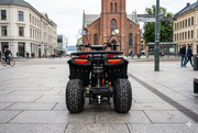 Dette er en helt ny modell (erstatter den velrenomerte 1500W Farmer som vi har solgt i flere år, men som ikke kunne registreres) Forventes inn i månedsskiftet mai/juni og kan registreres som moped for kjøring på vei. Stor og kraftig elektrisk ATV med direktemontert BØRSTELØS motor på hele 1500W montert rett på differensial. 3 effekttrinn pluss mekanisk høy/lav gir (totalt 6 posisjoner). Nå også med enda større batteripakke på 72V (fordelt på 6 x 20AH batterier) som gir en oppgitt kjørelengde på 35-40 km (avhenger av temperatur, underlag, vekt på fører og kjørestil). Rask, lydløs og lekkert design i en størrelse som passer fra ca. 8 år og oppover. Kan også fint også kjøres av voksne. Solid bygget og lettkjørt. Høy og lavgir (maks fart på høygir ca. 45 km/t og 20 km/t på lavgir). Drar godt i bakker. Klarer fint en liten henger med baggasje etc. Dette er modellen for deg som ønsker et miljøvennlig, stillegående og svært brukervennlig alternativ til bensindrift. Leveres med 50mm hengerkule, alu felger, digitalt speedometer m.m. inkludert!